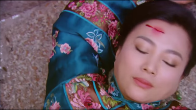 Cai Hong, thinking that everything is real, and that someone’s hand just got chopped off, fears for Shao Tian. She breaks out of her ropes and rushes downstairs. She blocks the axe hit right before it falls on Shao Tian.