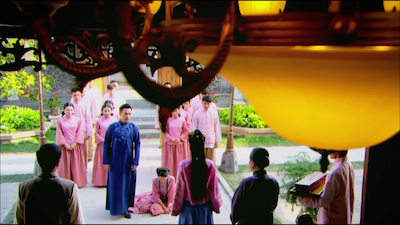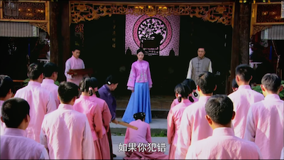 On Cai Hong’s first day, Fei Fei serves her a beating in front of all of the other servants just to show power and to teach her a lesson.