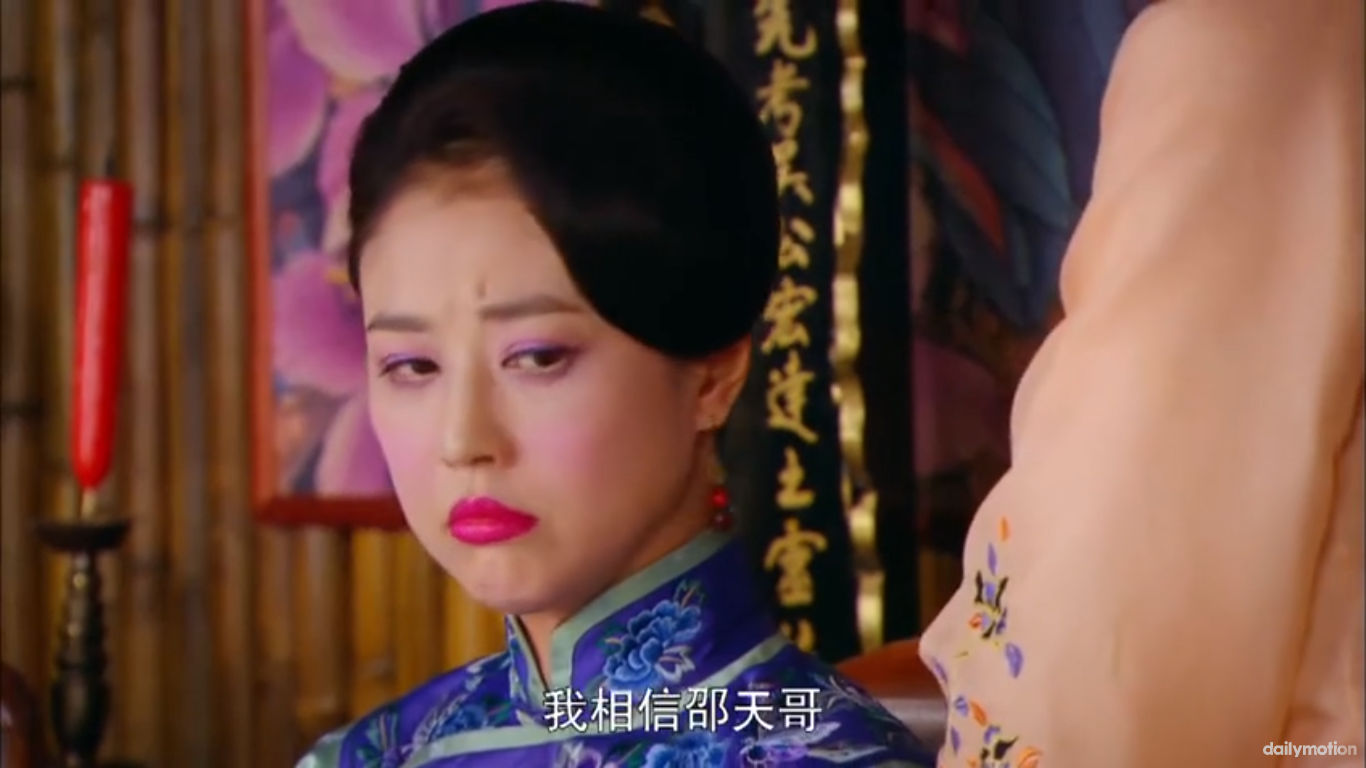 Fei Fei secretly drops a lipstick into Cai Yun’s bag, and frames Cai Yun for theft. Cai Yun ends up in the police office, with the fei police chief.