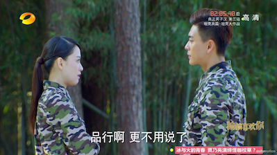The second test was a physical military examination. So we get literally 10 minutes of some ‘hard-core’ music (aka Chinese rap with some inspirational lyrics) with these cadets rolling in mud and dodging bullets. I get very bored during these scenes and there’s no real dialogue so I tend to skip them.