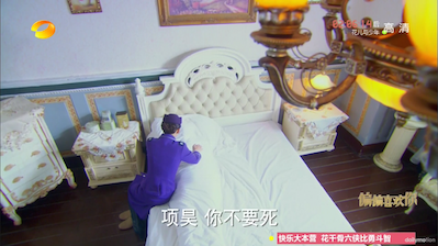 LOL in this cute scene Xiang Hao touches Shen Wen Tao’s hair and cuddles his arm and says a bunch of perverted loving things to Shen Wen Tao, thinking that he was Bao Bao.